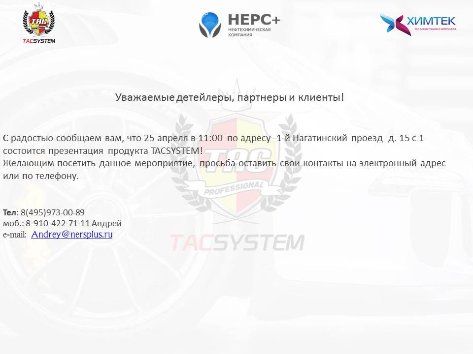 Семинар TACSYSTEM в городе Москва 25.04.2018!!!