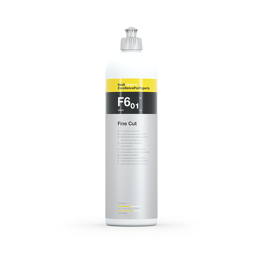 Полировальная паста FINE CUT 6.01 предназначена для устранений царапин, потёртостей с глубиной риски P1500. Разработана с учетом инновационных технологий и широко используется в современных детейлинг-центрах и малярных мастерских. Формула эмульсии вывела пасту на новый уровень в работе с лакокрасочным покрытием. Острый абразив «Боксит» плотностью 9,6 Мооса за счёт своих свойств обеспечивает быстрое сглаживание царапин, что существенно снижает риск ошибок при полировке. Отсутствие пыли обеспечивают лучшие эмульгаторы и масла, входящие в состав данной пасты. Равномерность распада абразива на однородное зерно позволяет получить высокую степень глянца 7,0 и вторым этапом закончить поверхность, применив антиголограммную полироль М3.02 (403001).Имеет одобрение Daimler-Zulassung (Mercedes-Maybach)