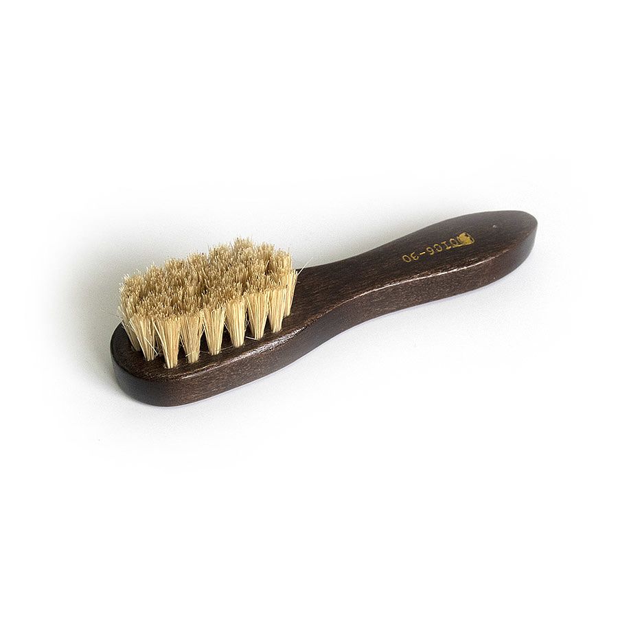Удлинённая ручка, позволяет локально устранять грязь в труднодоступных местах. Обеспечивает безопасную очистку структуры кожи. Плотный ворс устойчив к истиранию и хорошо вспенивает чистящую химию.Натуральная свиная щетина. Имеет плотный ворс и структуру усадки в колодку. Рукоятка покрыта лаком и создаёт удобный обхват для руки.