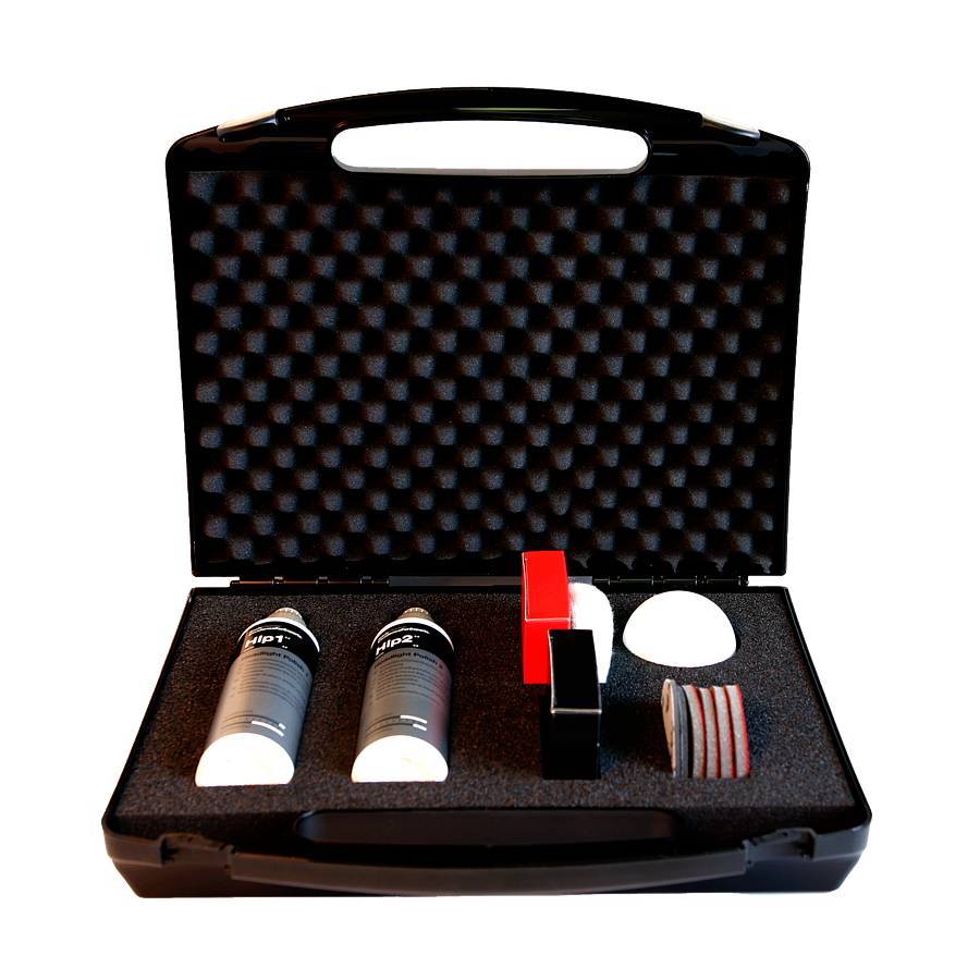 Набор для полировки предназначен для восстановления внешнего вида фар. Набор поставляется в специальном чемоданчике для удобства транспортировки и хранения. Благодаря специальному полировальному кругу удаётся добиться оптимальной температуры полировки. При превышении данной температуры круг изменяет свой цвет, это значит что нужно уменьшить скорость или усилие полировки.