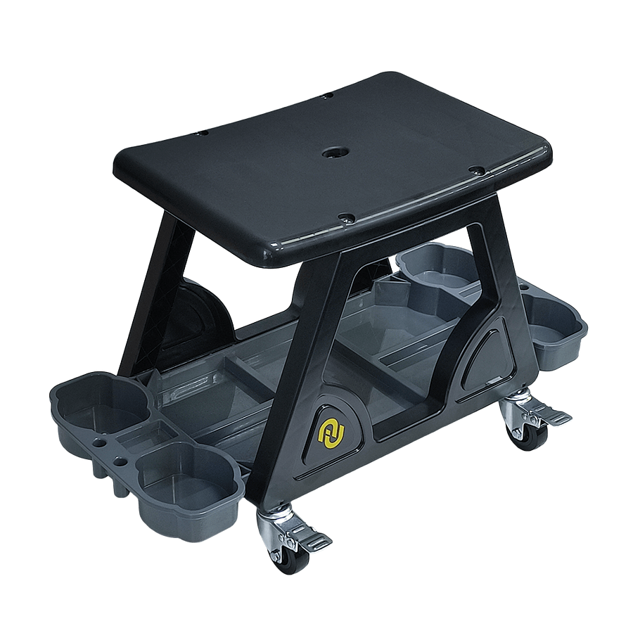 Благодаря высококачественному пластику, стул детейлера на колёсиках обладает высокой прочностью и устойчивостью. Наличие 4 колёс обеспечивает простоту перемещения конструкции и хорошую маневренность.