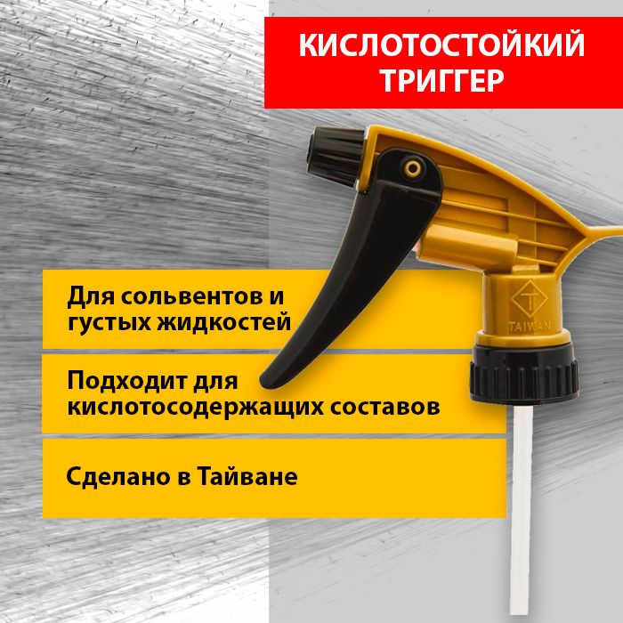 Gold Chemical Resistant Spray кислотостойкий триггер, Тайвань. Отлично работает с относительно густыми жидкостями и кислотосодержащими составами.