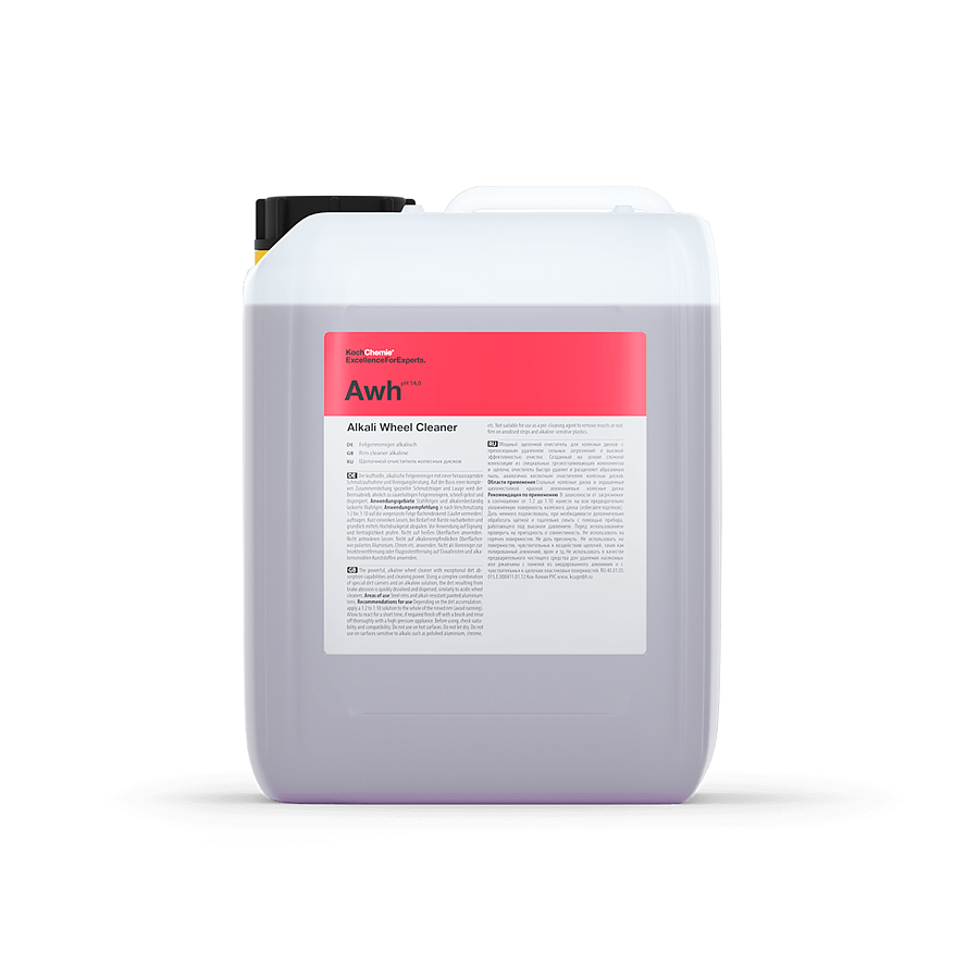 Мощный щелочной очиститель для колёсных дисков с превосходным удалением сильных загрязнений и высокой эффективностью очистки неорганических соединений. Созданный на основе сложной композиции из специальных грязеотталкивающих ПАВ с добавлением ингибиторов. Очиститель быстро удаляет и расщепляет абразивную колодочную пыль, аналогично кислотным очистителям колёсных дисков. Он также способен тщательно очистить основание дисков и подкрылков всего лишь за одно нанесение. Отличается хорошим смачиванием, мелким распылением и низким пенообразованием. Данные свойства обеспечивают деликатную, быструю и тщательную очистку дисков, тормозной системы и подкрылков. Быстро отстаивается в соответствии с требованиями Австрийского стандарта ÖNORM 5106.