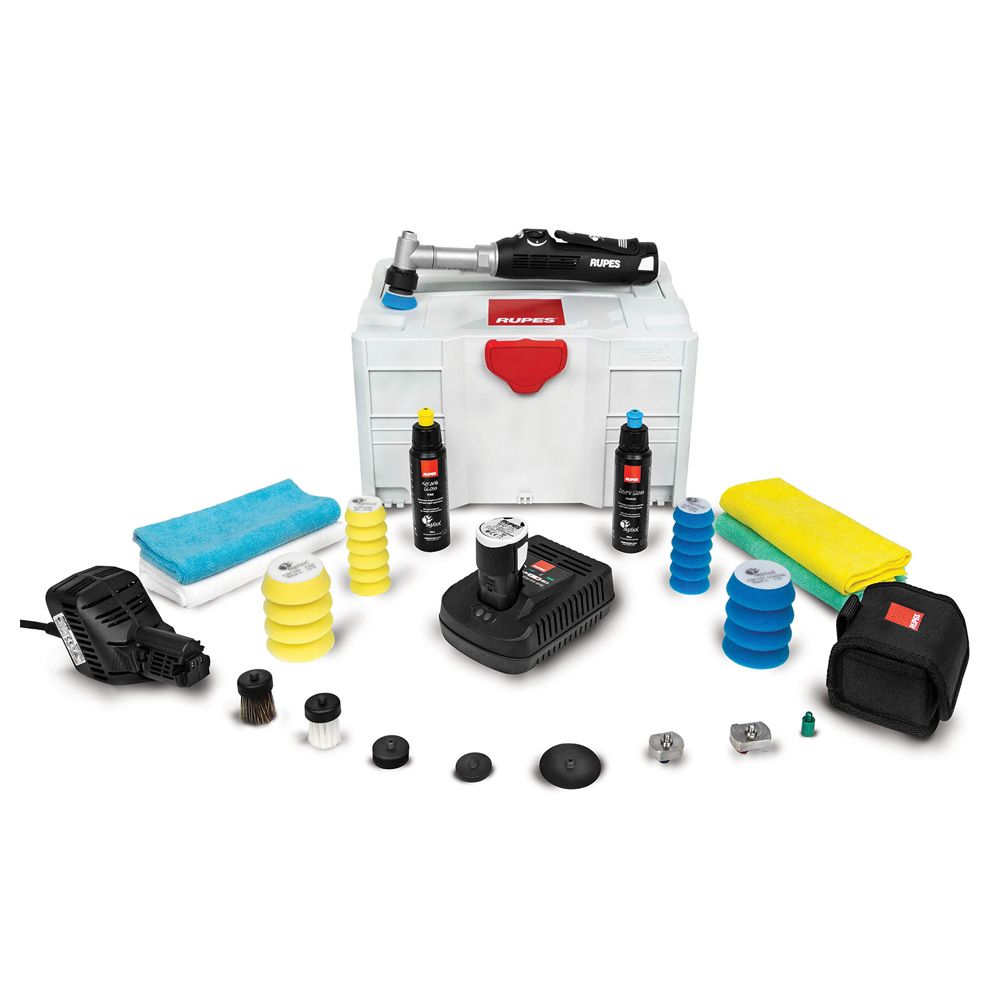 RUPES HR 81ML/BLX – полировальный набор в пластиковом кейсе с удлиненной полировальная аккумуляторной минимашинкой RUPES HR 81/ML iBRID NANO. Новейшая машинка RUPES BIG FOOT IBRID NANO в разы повысит эффективность процесса полировки. Функциональность аккумулятора и беcпроводное электропитание позволяют выполнять задачи беcпрерывно. Блок двойного энергопитания дополнен функцией изменения типа вращения, которая является революционной в области детейлинга и ухода за автомобилем. Высокоэффективный двигатель позволяет экономить энергию, представляя оптимальные характеристики при малом воздействии на окружающую среду, по сути, снижает потребление электроэнергии. Инструмент входит в семейство BIG FOOT, т.е. полировальных машинок с высокой степенью надежности и качества. Машинка HR 81ML совместима со всем ассортиментом поролоновых полировальных дисков, паст и аксессуаров для практически всех областей применения. Новый инструмент RUPES HR 81/ML – универсальный инструмент, которым можно работать, не прикладывая усилия, держа одной рукой. Эксцентриковое движение, ротационное движение, полирование, матирование, чистка, все в одной компактной и простой машинке.
